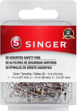 AMZ00225  Safety Pins Assorted Steel Brass 50/bx Singer