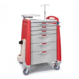 CAPSAM10MC-ER-C-DR  Cart Full Drawer Core-lock Red O2, Sharps, Aed 6Dr